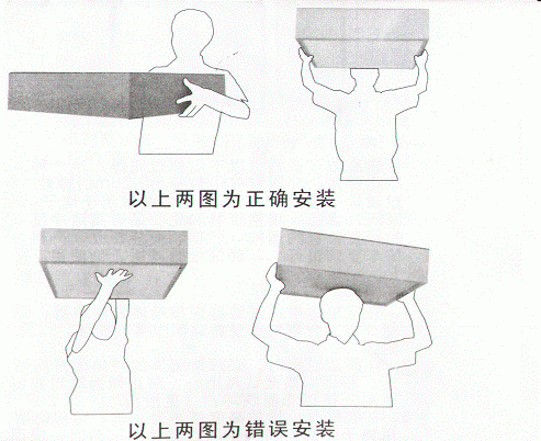 5.安裝時(shí)用手托住四周邊框,慢慢移進(jìn)送風(fēng)口內(nèi),不能用手和頭頂住濾料,以免濾料斷裂,影響過濾效率(如圖)